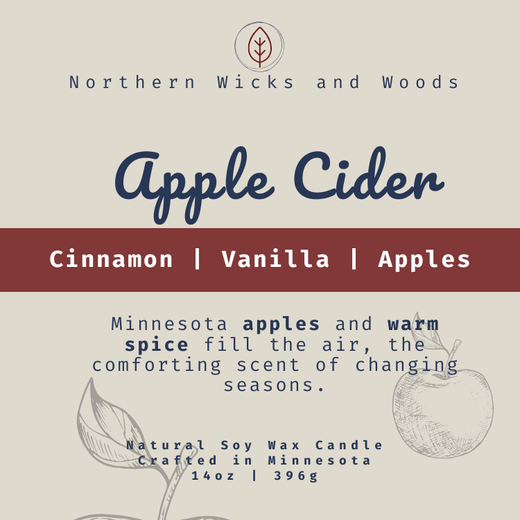 Inspired by the fall and winter season in Minnesota, this Apple Cider candle captures the feeling of wrapping up in a flannel on a brisk northern day creating a comforting, familiar, and fresh.